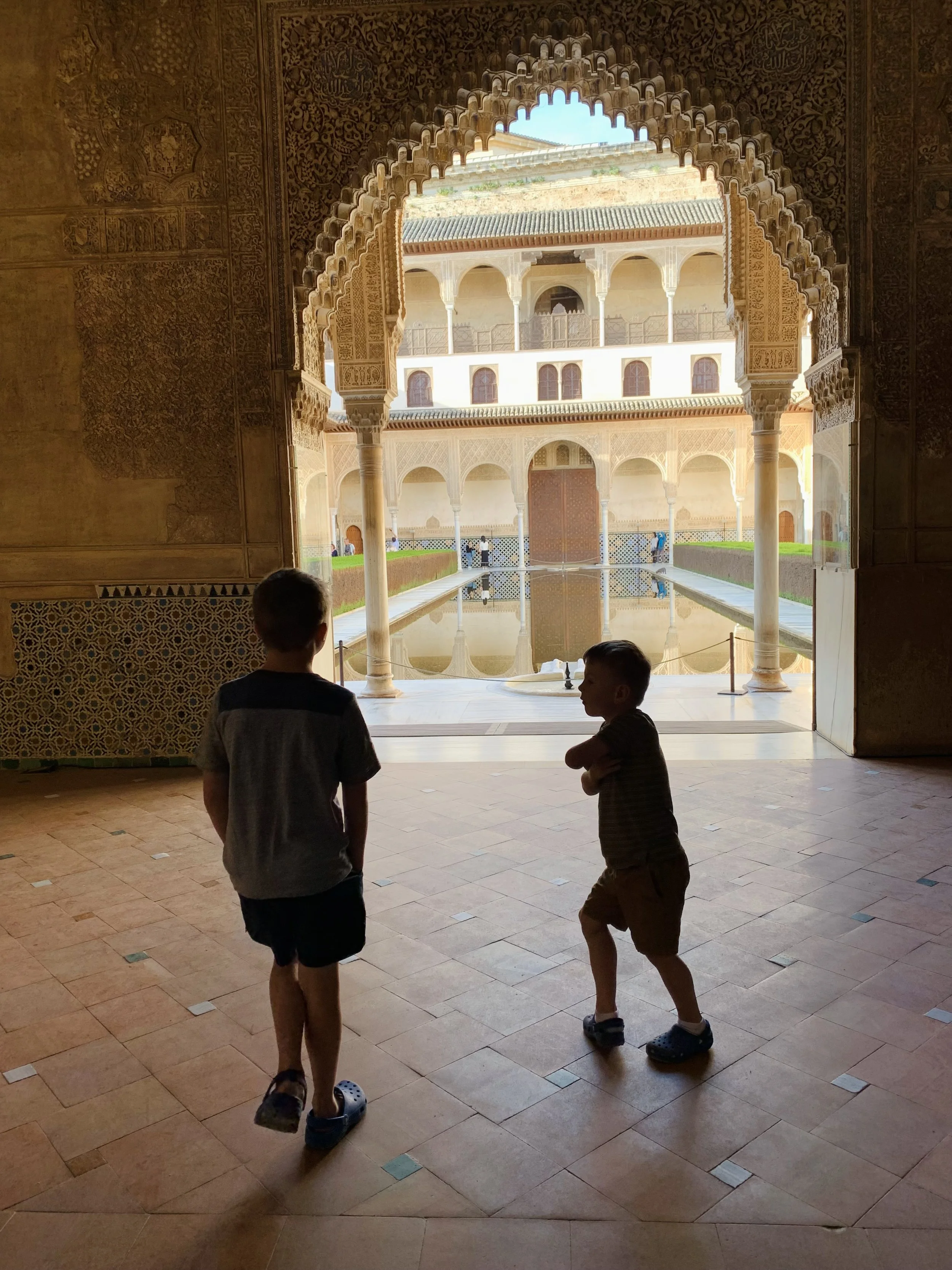 The Alhambra was an absolute highlight for me! I’ve never seen anything like it—so, so stunning and beautiful. It was once a Moorish fortress—and the geometrical features and tile work were so cool. I took so many pictures of the tile (ha!) and felt like I was walking back in time as we explored. Although the kids were not as impressed as Josh and I, they still loved wandering around and running around the gardens too. And they took pictures with me—smiling and all ;)
