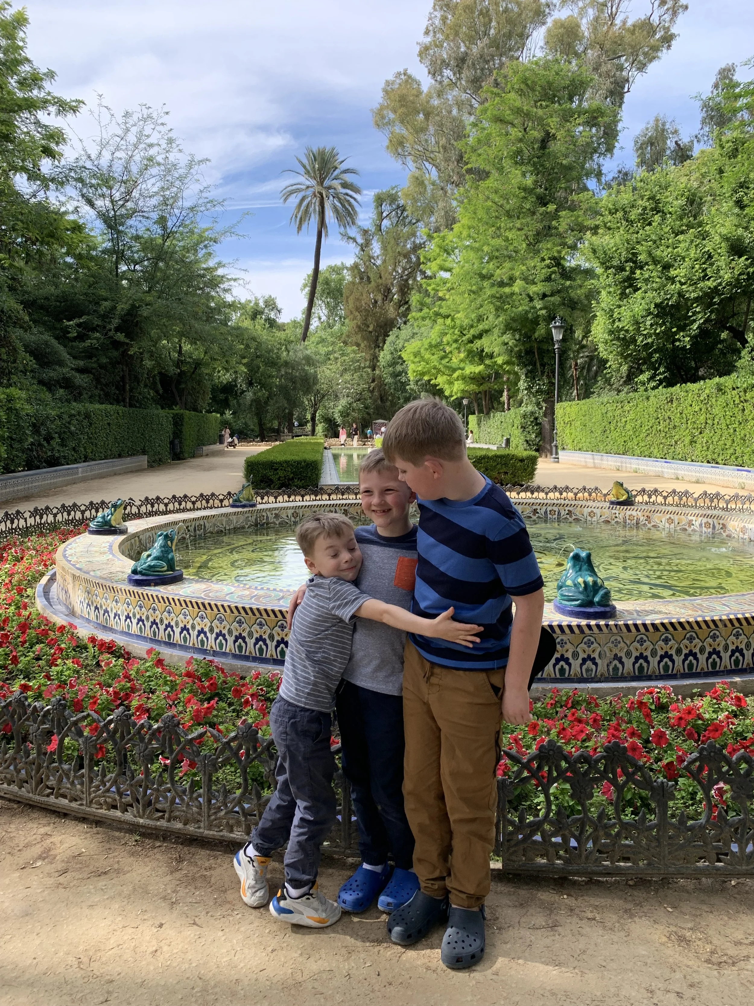 Plaza de Espana: Of course, we had to go visit this iconic plaza. We actually went twice! The first time, we got to watch some Flamenco and look around without a lot of crowds. And the next day, the boys got to do a boat ride (it was only 6 euro total to rent the boat). Even though it was hot, they loved it! And I loved meandering around, people watching, and looking at all the little details.
